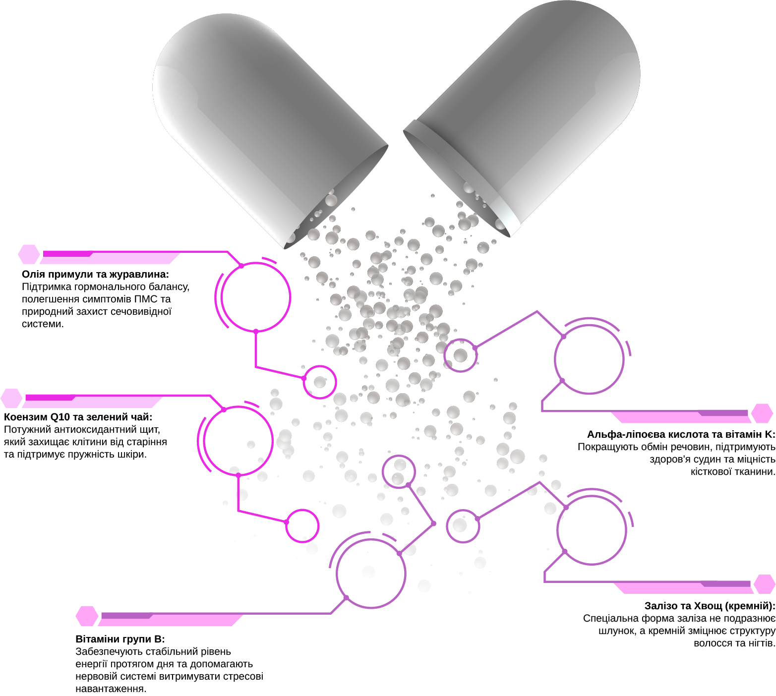 Більшість стандартних вітамінів мають мізерні дозування та дешеві форми, які організм просто не здатний засвоїти. Ви купуєте "пустишку", що не доходить до клітин. EVE працює інакше: професійна концентрація нутрієнтів у м’яких капсулах гарантує миттєве всмоктування. Ви отримуєте реальний результат, який відчуваєте фізично, а не просто напис на етикетці.