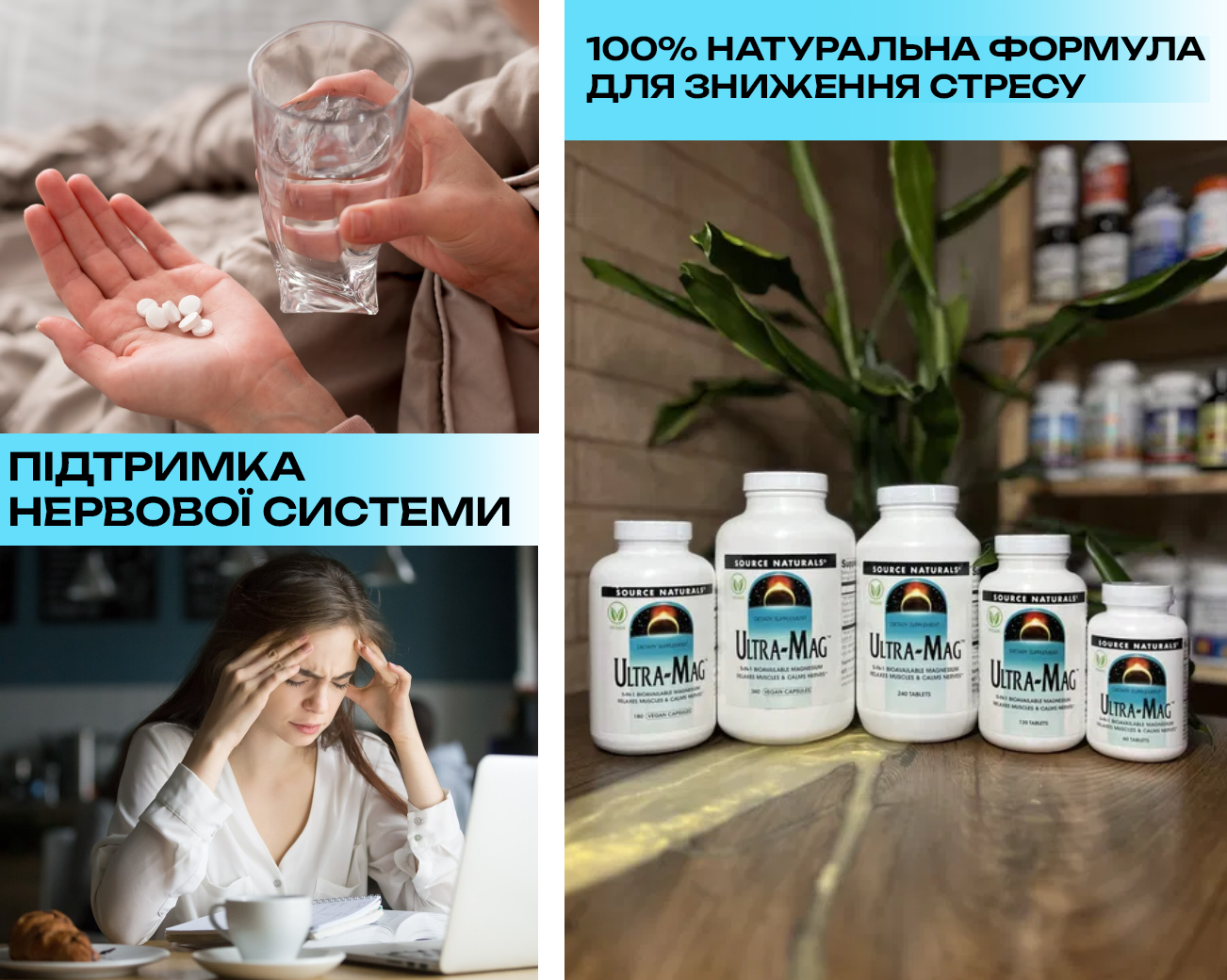 | Магній (комбінований: citrate, succinic acid complex, glycinate, malate, taurine complex) | 420 mg | 100% |