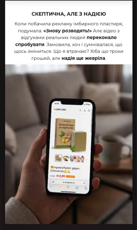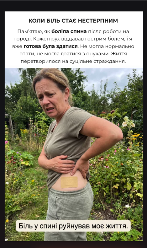 Використовую при болю в попереку. Дуже зручно — наклеїла і займаюся своїми справами. Біль стає значно меншим вже через 20–30 хвилин. Сподобалось, що склад натуральний.